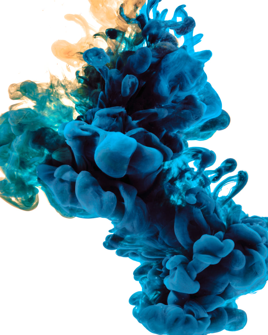 Os cachos esfumados de tinta fluem de uma flor como se estivessem submersos em águas escuras.