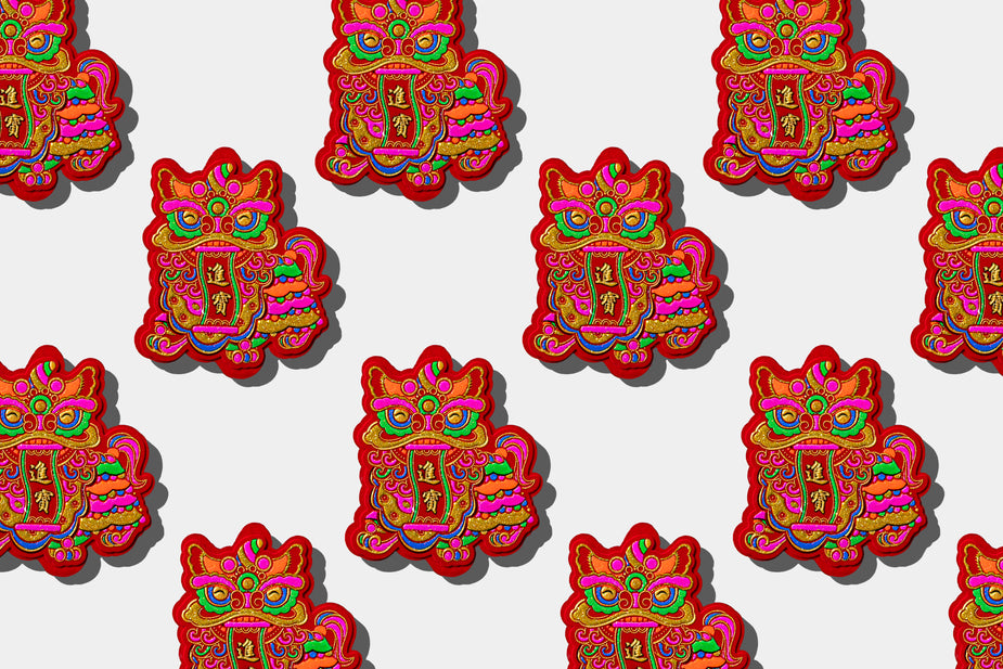 A close up of details featured on red paper.