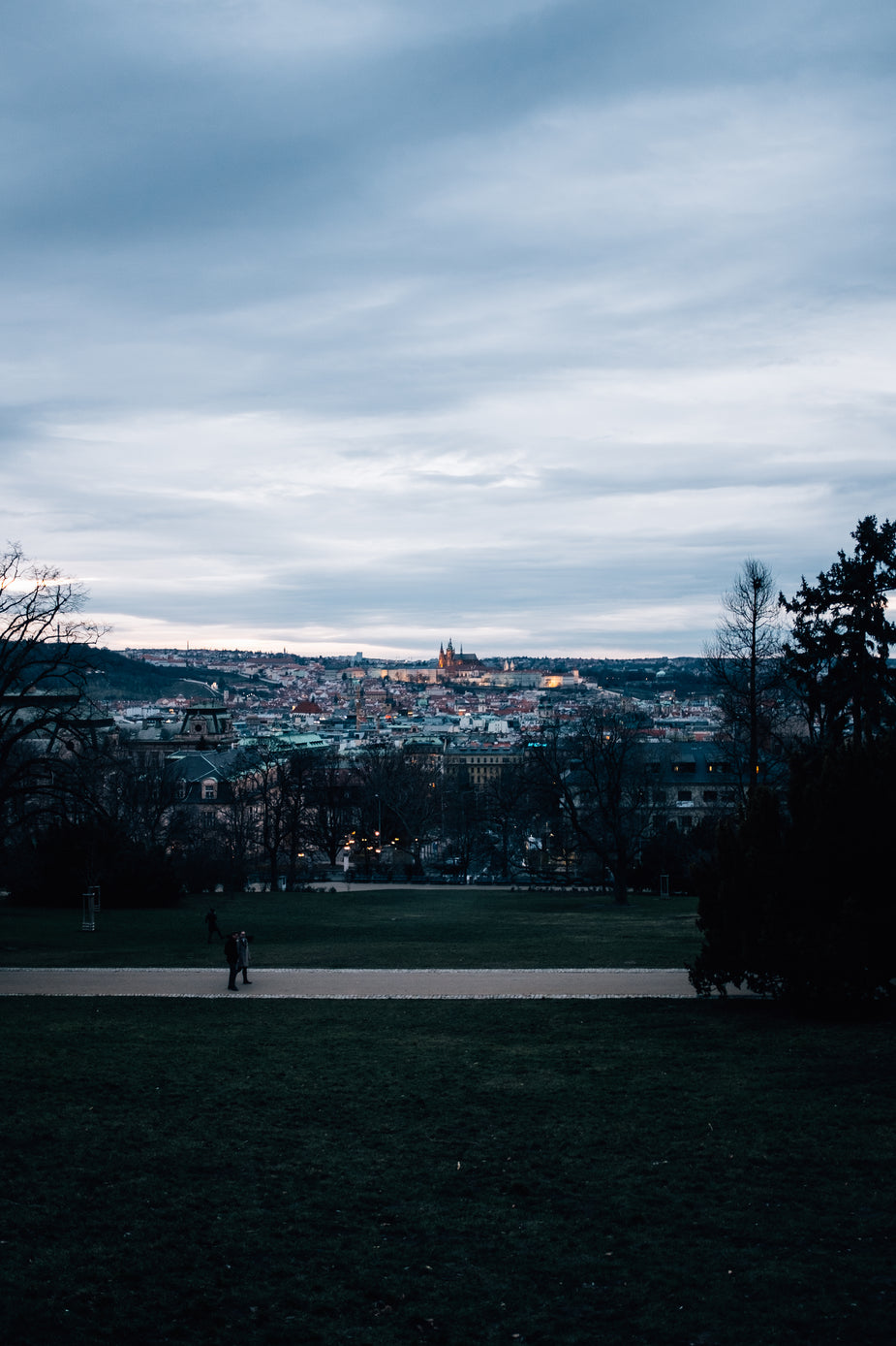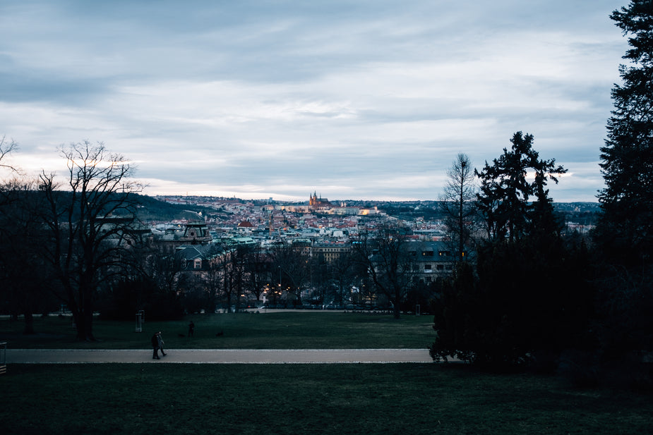 A glorious angled shot of the Prague National Museum glows at sunset.