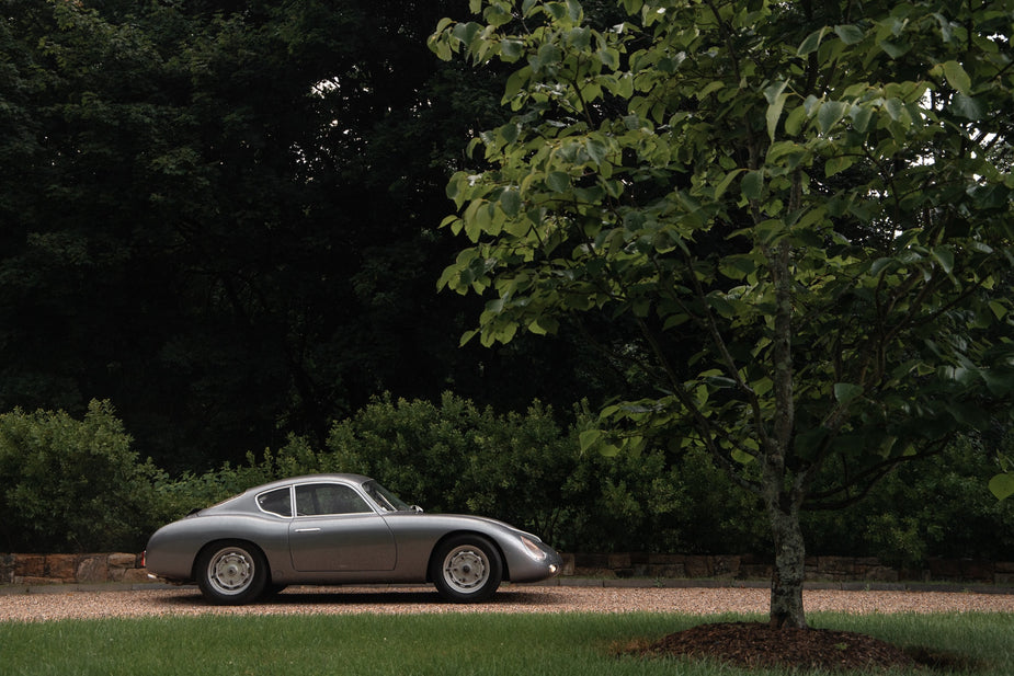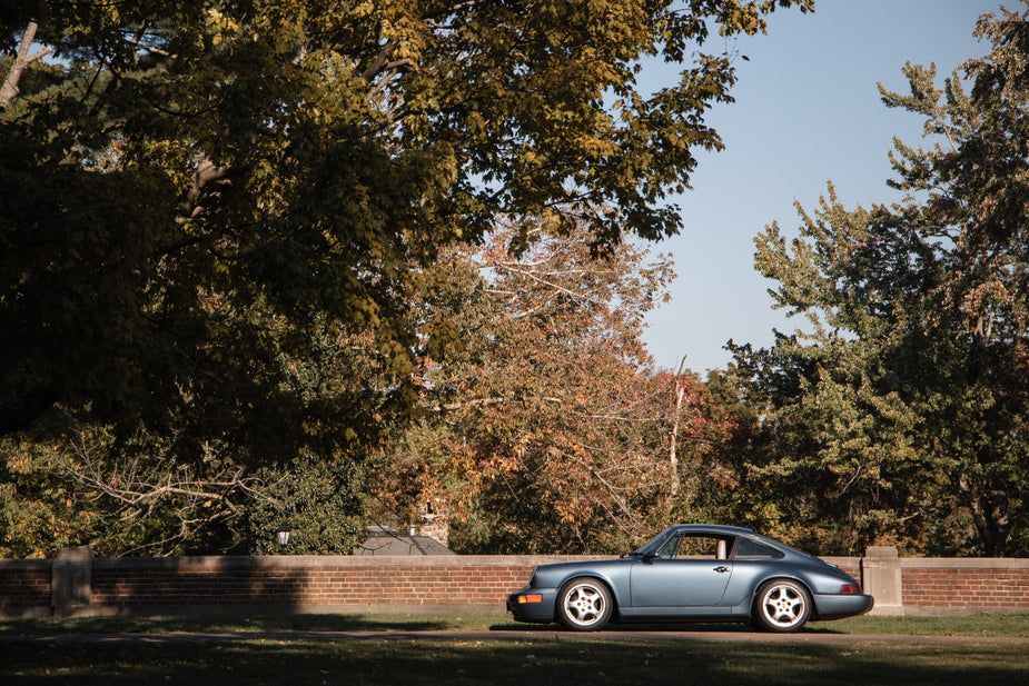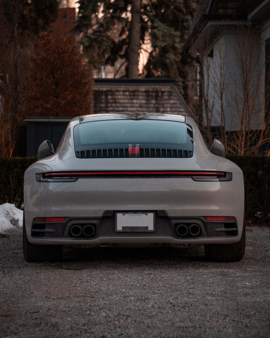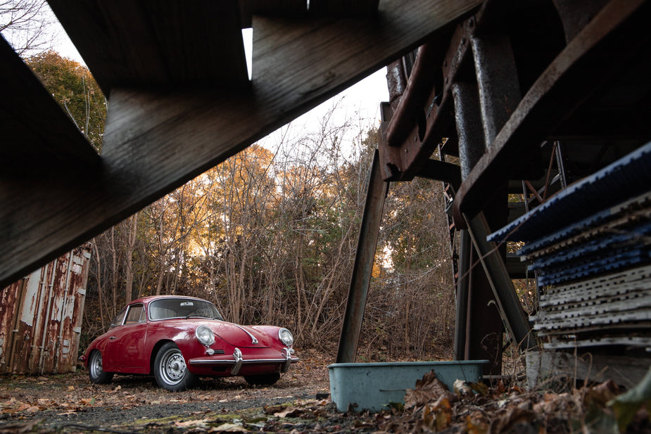A toy sports car shot close up to create the illusion of a full-sized car in the dramatic sandy landscape.
